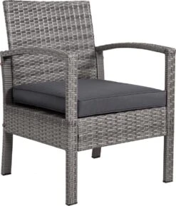 Casaria Polyrattan Loungeset – 2 Stoelen 1 Bank 1 Tafel – Antraciet