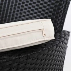 De tuinbank van Casaria is een stijlvolle toevoeging aan jouw buitenruimte. De bank in een moderne, tijdloze look maakt indruk met zijn ingewikkeld handgeweven polyrattan weefsel in een edele zwarte look. Een bijzonder hoogtepunt is de geïntegreerde tafel met polywood tafelblad en opbergbox. Plaats jouw drankjes, smartphone, tablet of andere gebruiksvoorwerpen op het elegante tafelblad of berg ze op in de box. Het gepoedercoate frame van robuust staal kan tot 120 kg per kant dragen. De comfortabele zitkussens hebben een hoge schuimdichtheid en gramgewicht. De stoelhoezen zijn waterafstotend, afneembaar en wasbaar. Polyrattan is een zeer stabiele, gelijkmatig gewikkelde kunststofvezel die speciaal is ontwikkeld voor tuinmeubelen. Het is weerbestendig, UV-lichtbestendig, vuilafstotend en gemakkelijk te reinigen.
