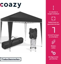 Jouw Coazy Partytent is zeer eenvoudig te monteren en te demonteren – geen speciaal gereedschap nodig! Dankzij de metalen stutten is hij gemakkelijk in drie verschillende hoogtes te verstellen, zodat je hem kunt aanpassen aan je ruimte. Bovendien zorgen de meegeleverde haringen en scheerlijnen ervoor dat je tent zelfs in de meest winderige omstandigheden stevig staat.