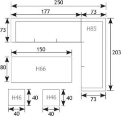 • Afmeting hoekbank: 251 x 205 x 85 cm