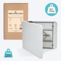 LifeGoods Klaptafel – Inklapbaar – 70x180cm – Verstelbare Vouwtafel – Weerbestendig – Wit