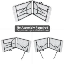 Het lichtgewicht ontwerp, draaggreep en auto-lock maken het zeer eenvoudig de tafel op te slaan en voor iedereen gemakkelijk op te zetten en neer te halen.