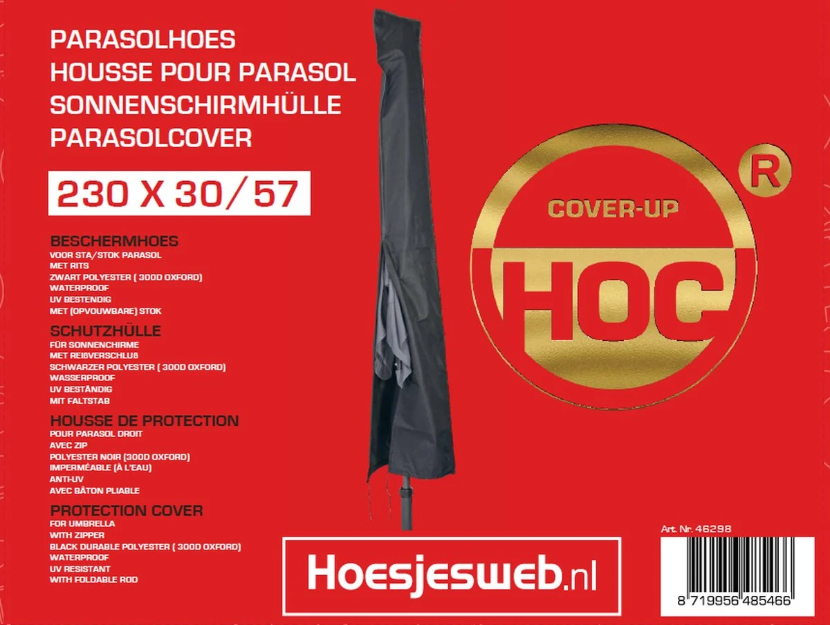 Een hoes voor het vroege voorjaar tot hij naar binnen gaat RED label parasolhoes.