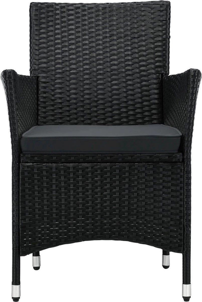 Met het materiaal polyrotan ben je helemaal on trend. Het hoogwaardige gevlochten materiaal wordt steeds populairder en overtuigt met tal van positieve eigenschappen. De synthetische vezel trotseert weer en wind en is ideaal voor gebruik op je terras of in de tuin. De unieke rotan-look in zwart met grijze kussens geeft je nieuwe loungemeubel een moderne charme. Geniet van warme zomeravonden in ontspannen samenzijn met een glas rode wijn op je balkon.