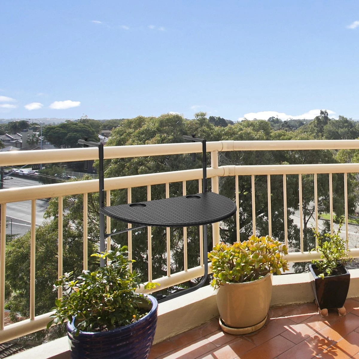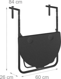 Relaxdays Balkontafel Inklapbaar, Balkon Tafel Rotan, Hangtafel Reling – Zwart