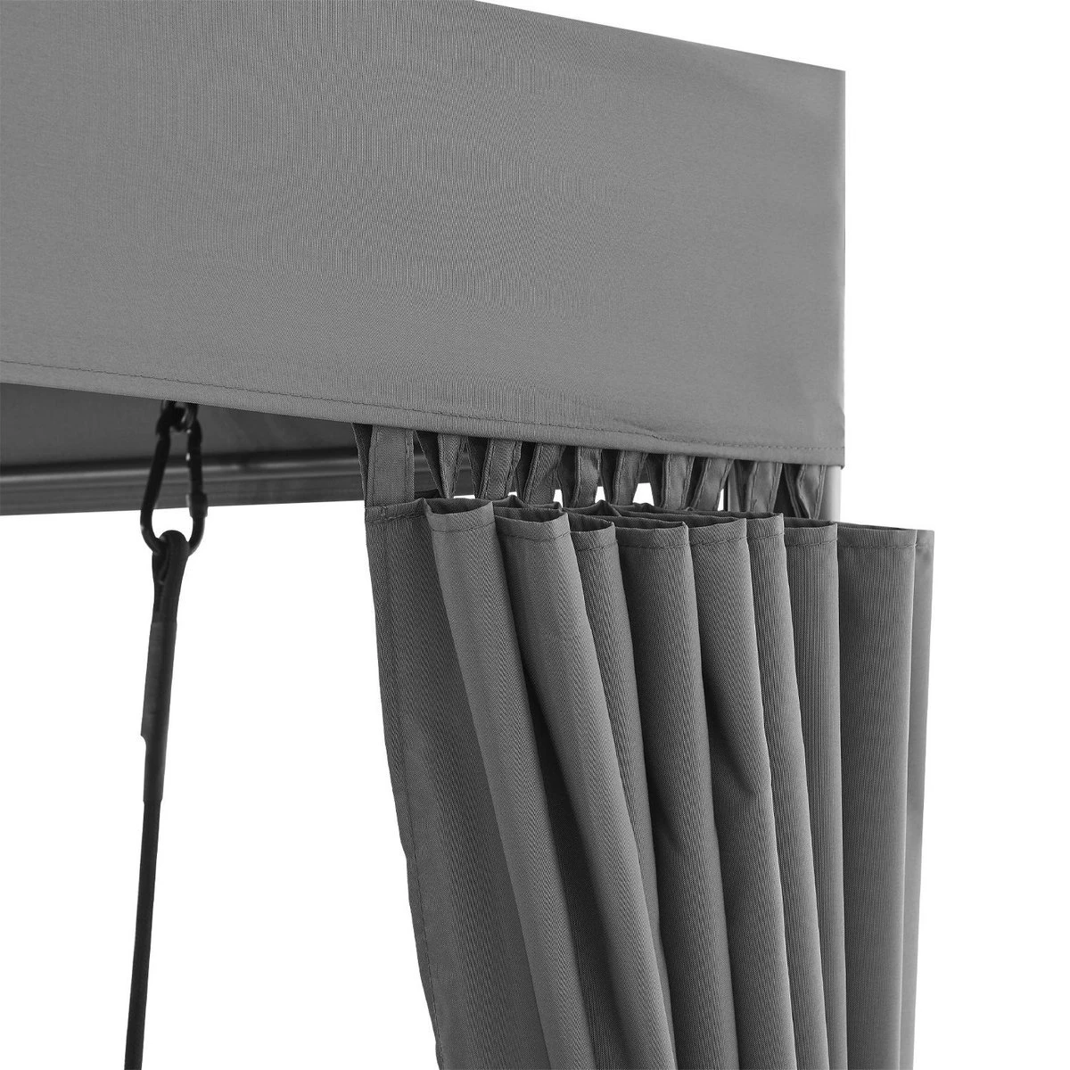 Het elegante schommelbed Kassandra is het nieuwe middelpunt van je tuin om je voeten op te leggen en te genieten van de zomer. Ontworpen in de stijl van een Balinees bed, zorgt het voor ontspannen schommelen dankzij het vrij hangende ligvlak. Modern en exotisch, zoals op vakantie in de Stille Zuidzee, zal deze tuinligstoel een blikvanger zijn in elke wellness-oase. Het dak en de gordijnen aan weerszijden zorgen voor veel privacy en beschermen tegelijkertijd tegen te veel zon en lichte wind. Ontworpen voor 2 personen, kunt u samen ontsnappen aan het dagelijkse leven en wegzweven als op wolken.