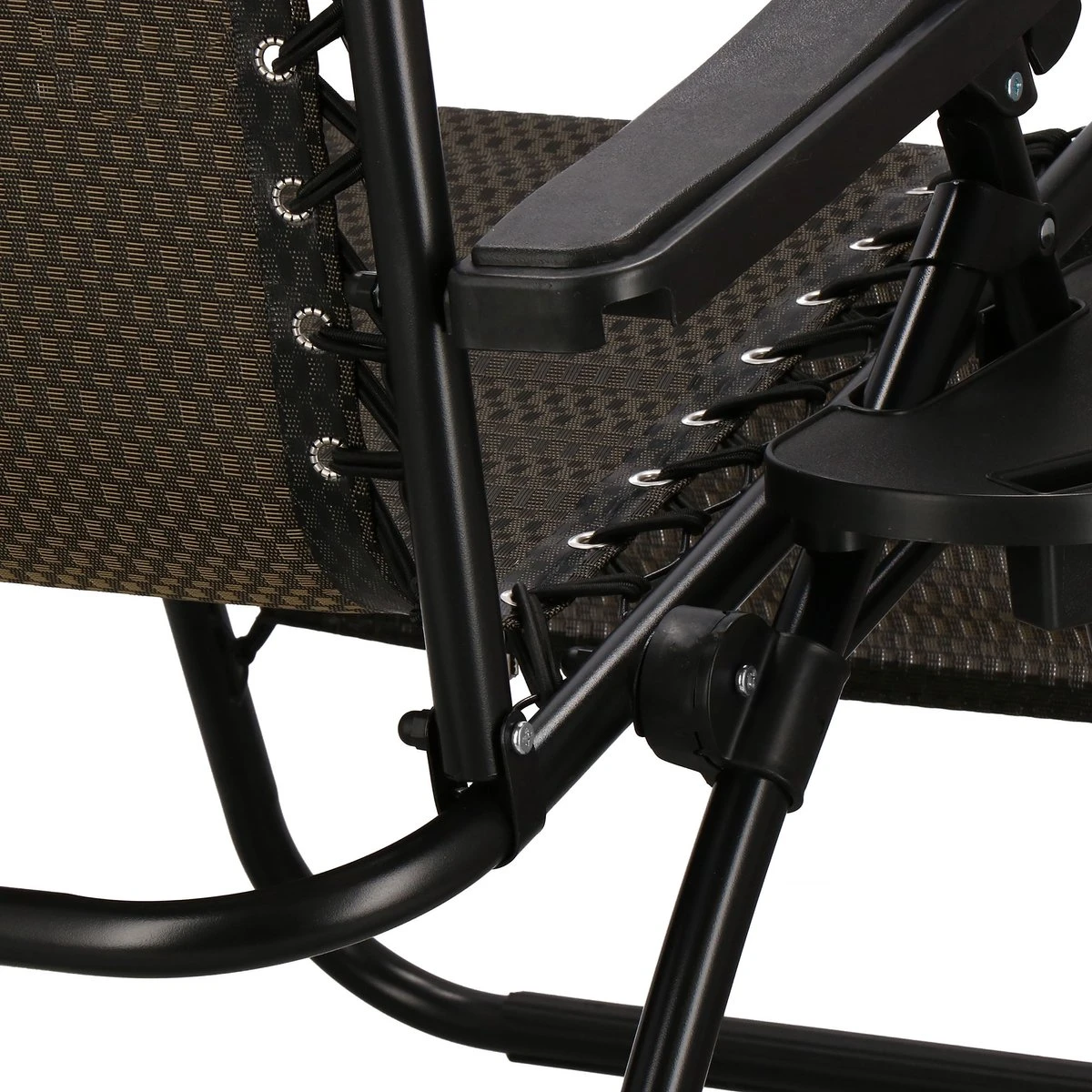 Springos Tuinstoel | Ligstoel | Opvouwbaar | Verstelbaar | Ergonomische Hoofdsteun | Bruin / Zwart