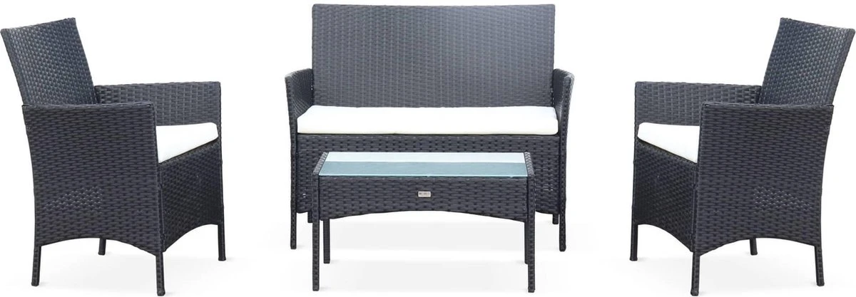 2 fauteuils, 1 sofa en 1 salontafel – zwart/ecru